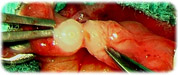 Vasovasostomy: (joining the two ends of the vas) we carry out a three layer anastomoses (Joining). The most inner layer of the vas (mucosa) is joined together with 10/0 nylon by 6 or 7 interrupted sutures (shown in the pictures).